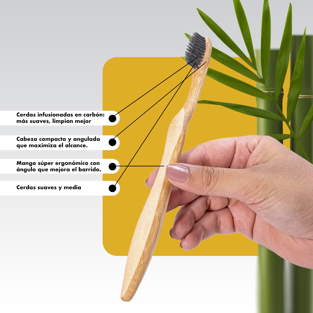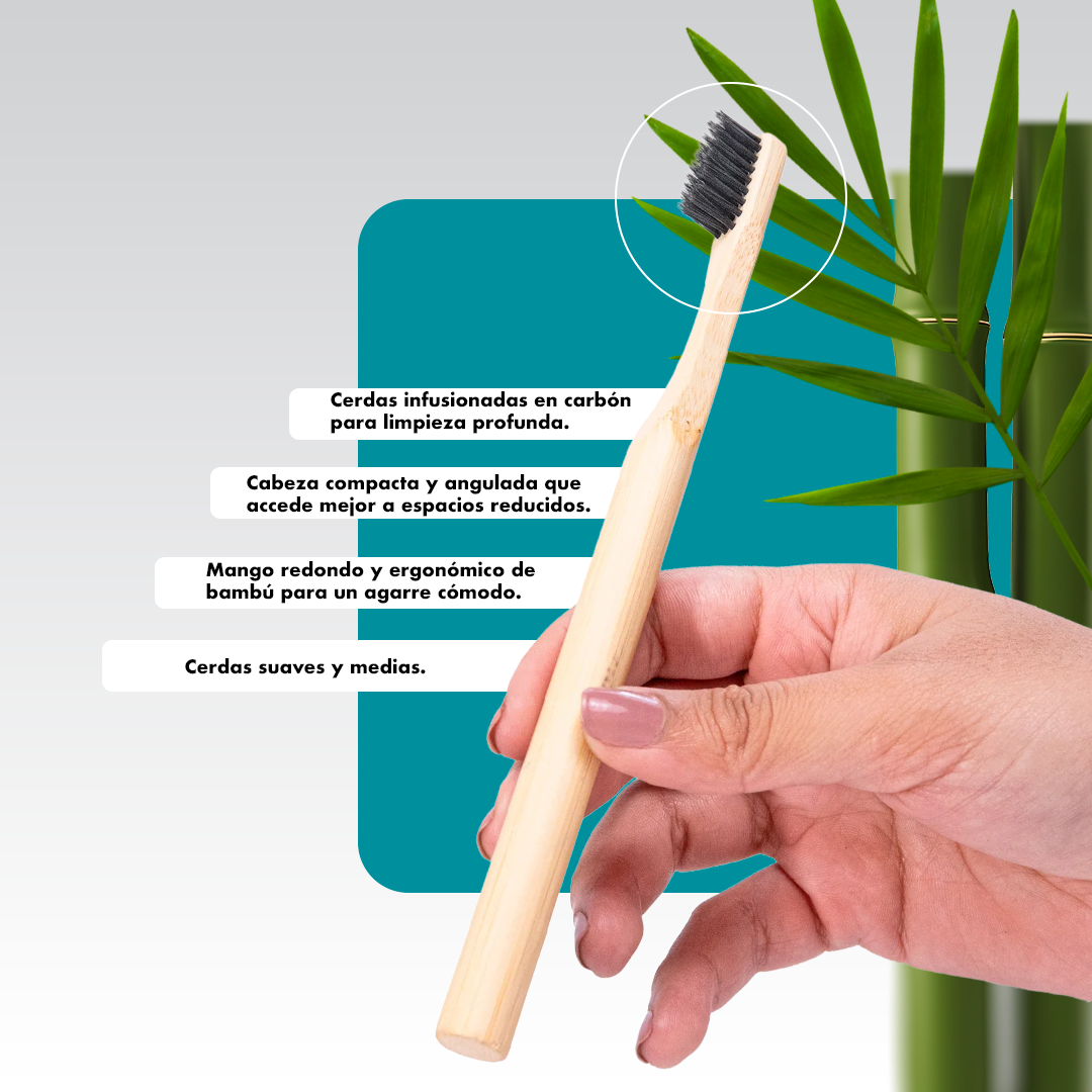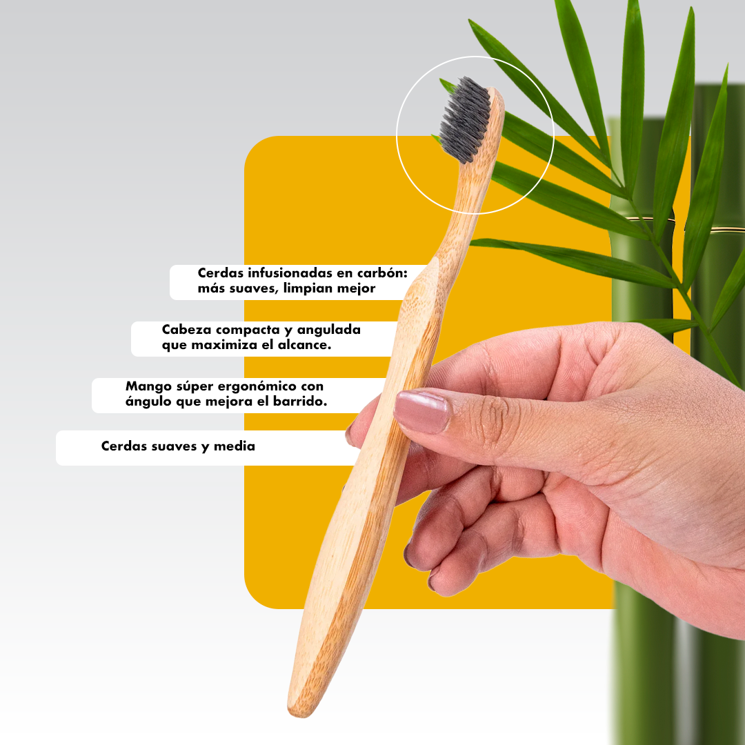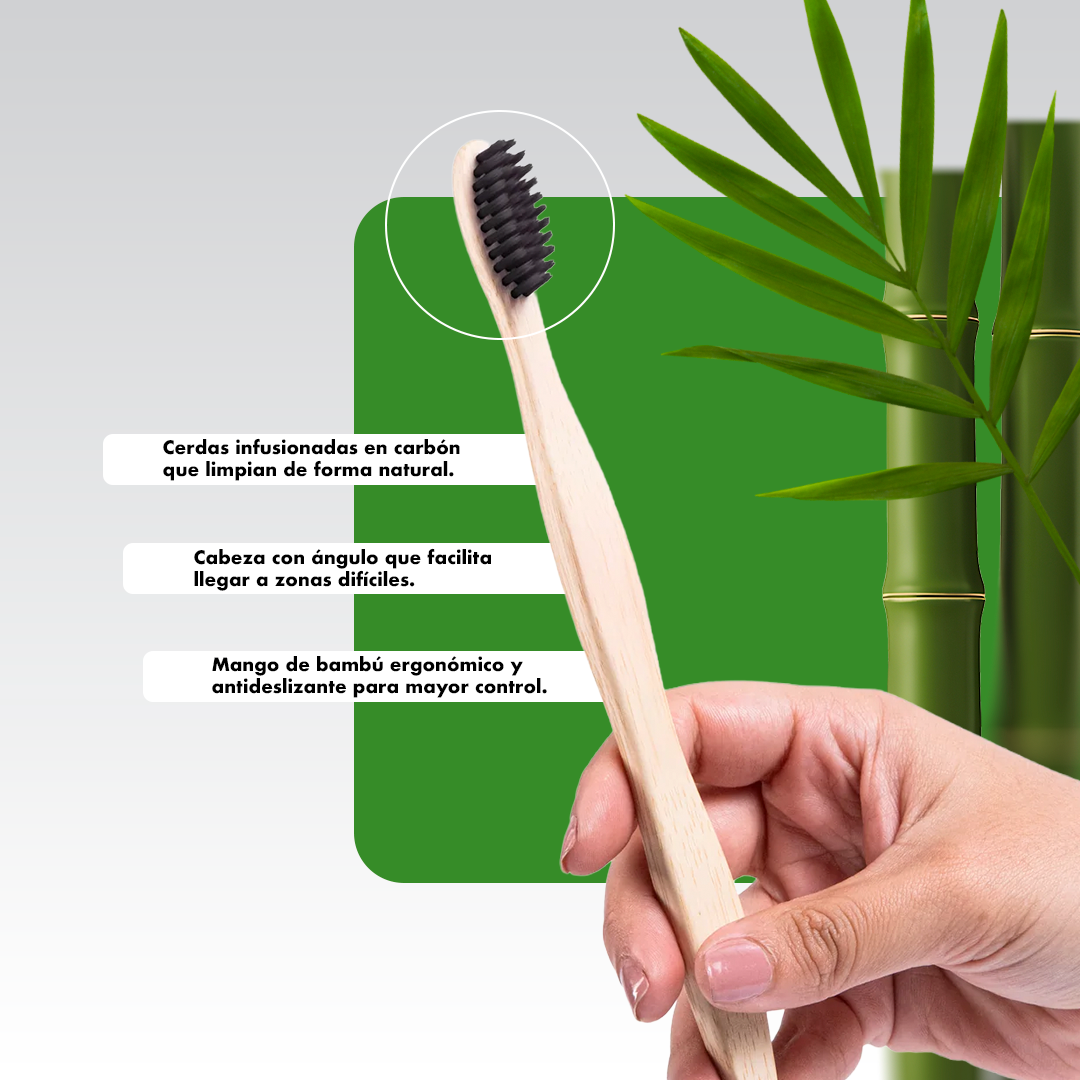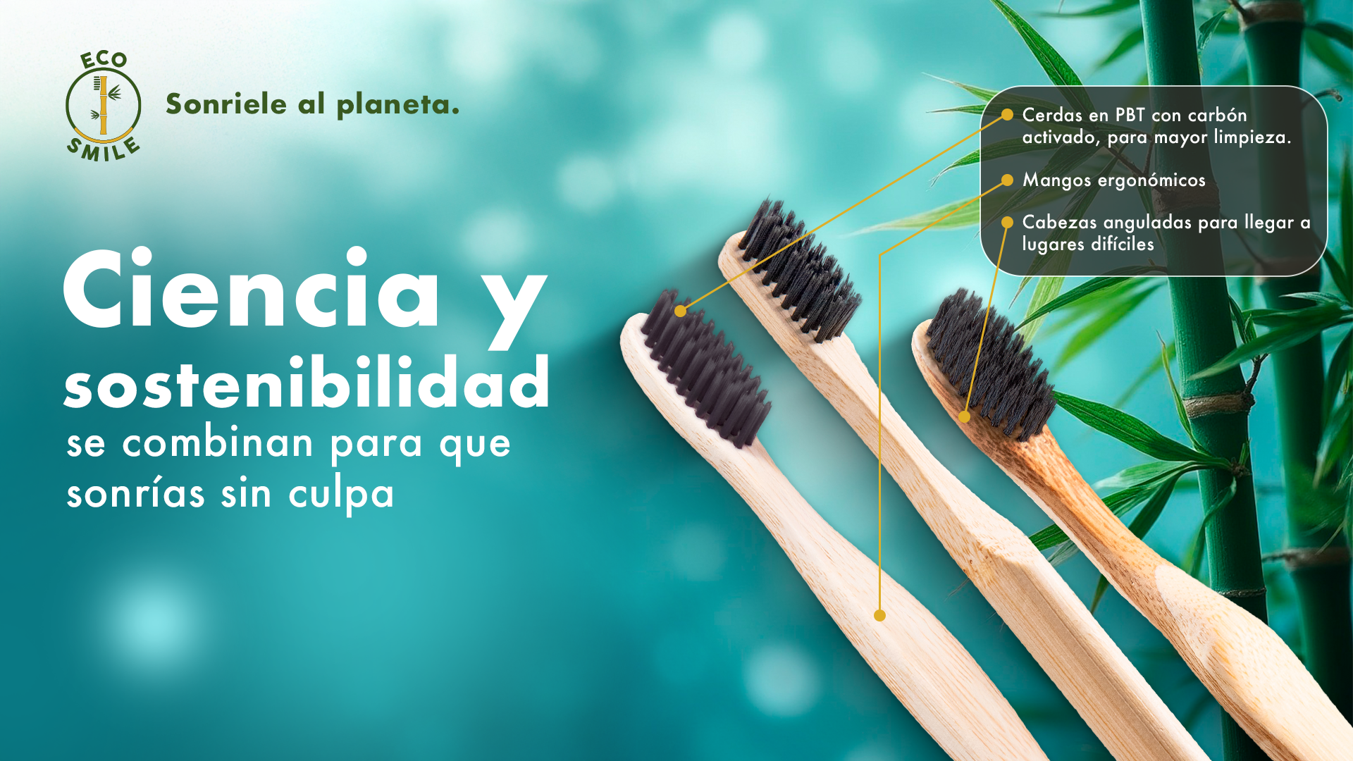 Cuidar tu sonrisa también puede cuidar al planeta. Los cepillos de plástico duran más de 100 años en la Tierra. En Eco Smile usamos bambú: natural, biodegradable y renovable. Diseño ergonómico, cerdas suaves con carbón y limpieza superior. Eco Smile: tecnología para ti, conciencia para el planeta.
