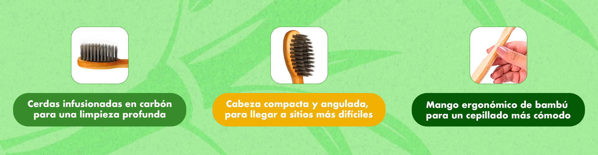Diseño ergonómico, cerdas suaves con carbón y limpieza superior.